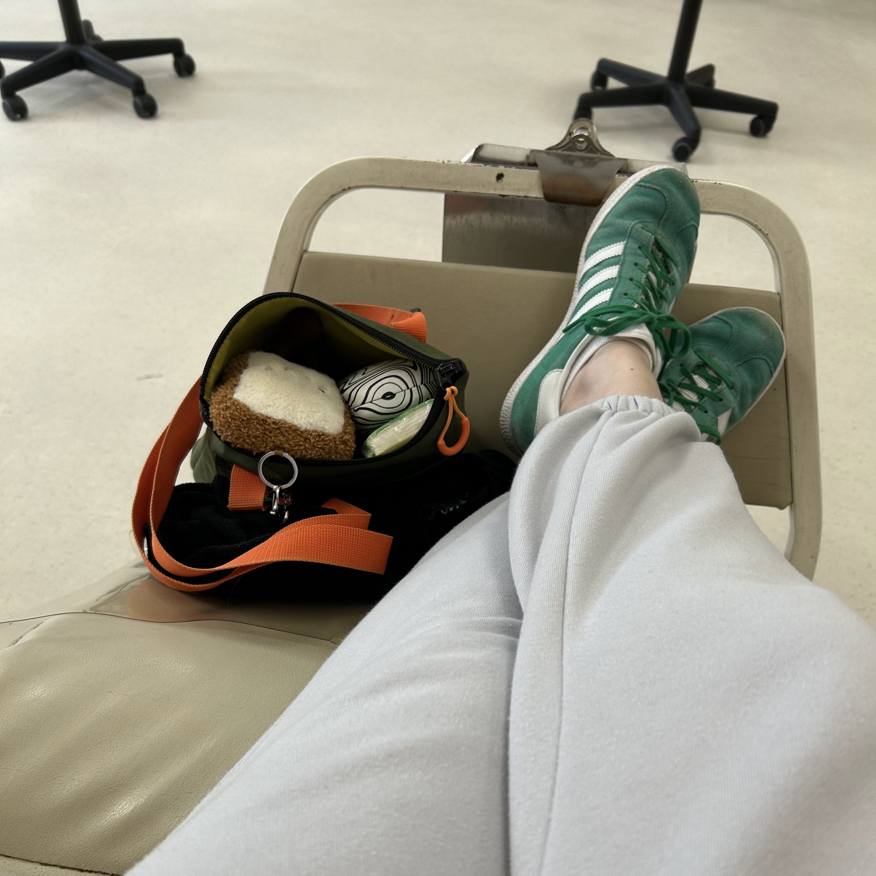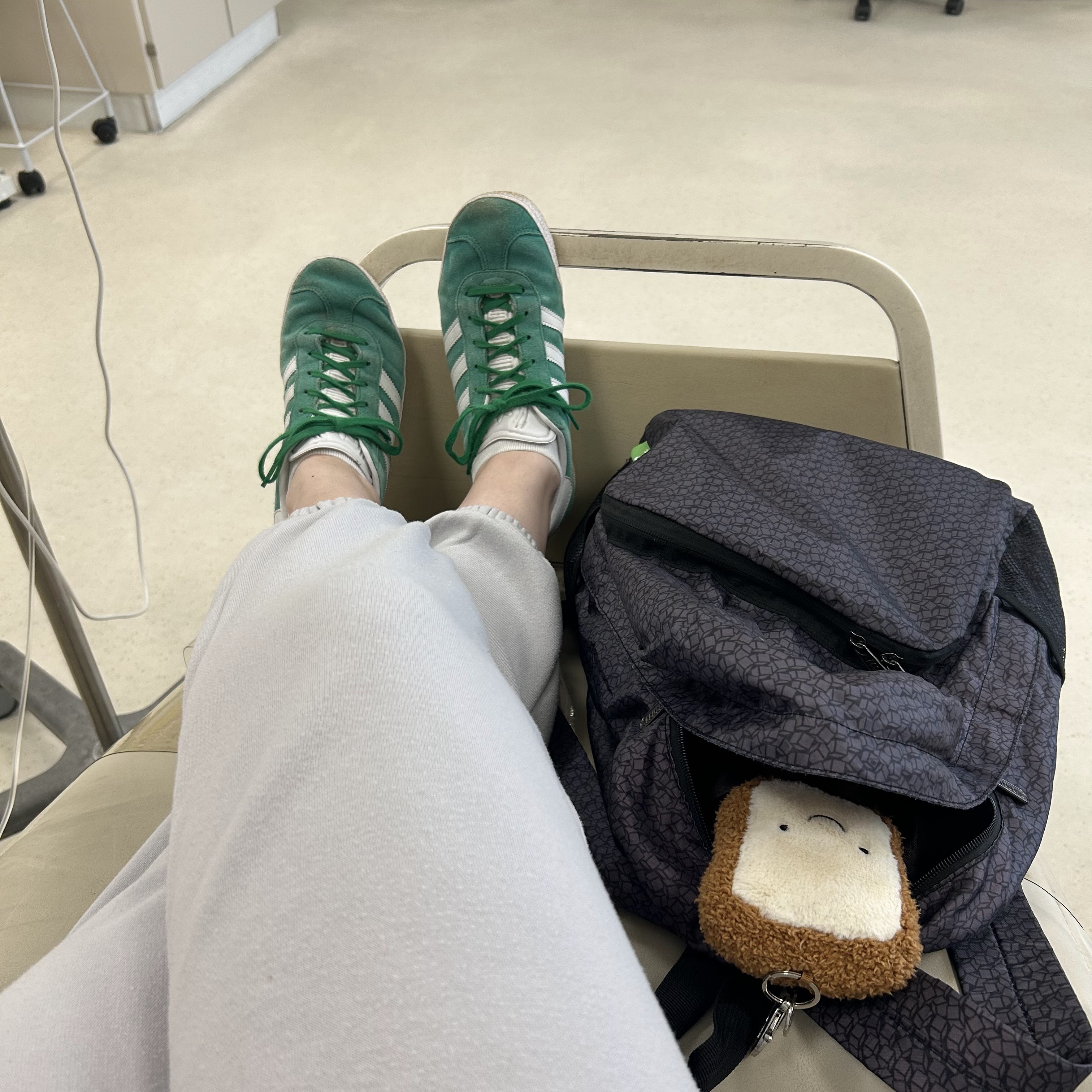 These two lovely ladies sat and talked to me and gave me advice on things to eat and drink, and just generally made me feel better about starting the treatment. They both said that they always make the side effects sound so scary, but they do it so that you keep looking after yourself. Plus, anything that does seem wrong, always tell them. Then one of the ladies started talking about the staff and how lovely they are, and she said if you hear squeaky shoes then that will be Megan. Both the ladies were called through before me and I sat there waiting.